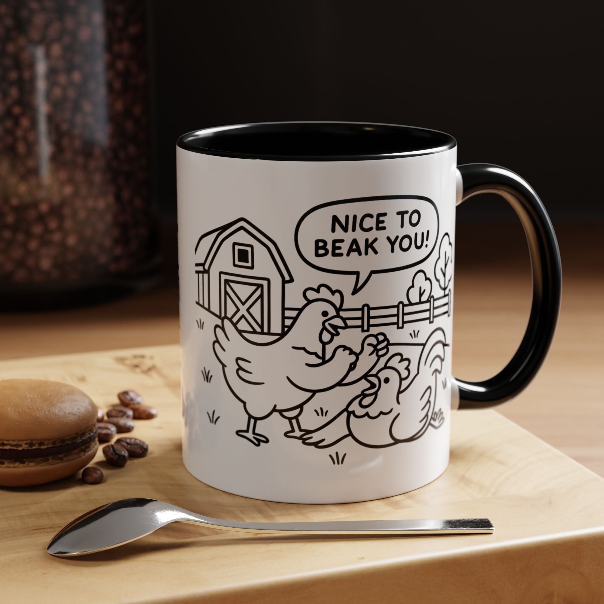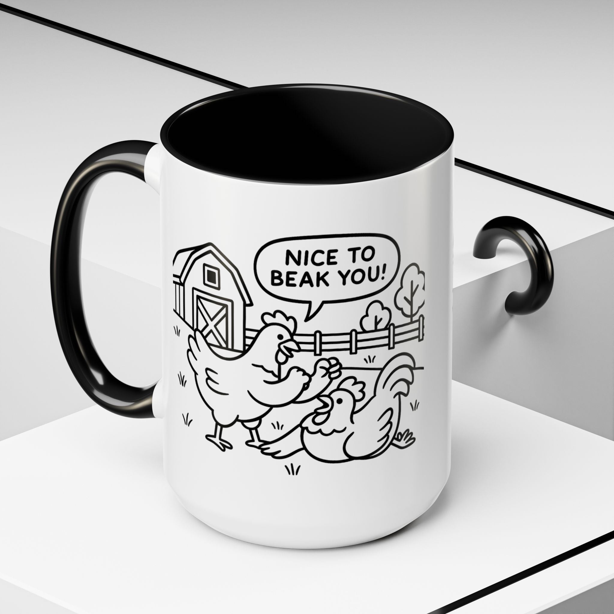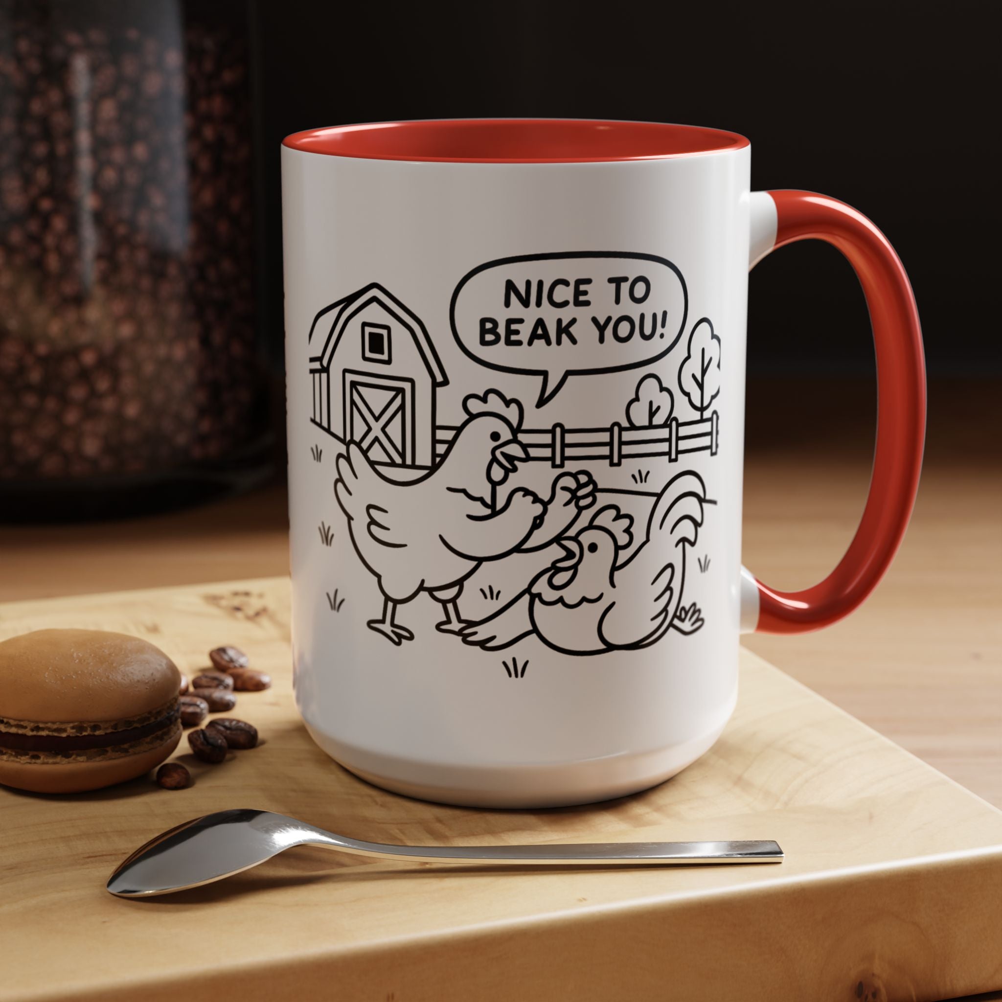Introducing the perfect morning companion: a stylish Accent Coffee Mug that transforms your coffee ritual into a delightful experience. With its vibrant colors and eye-catching designs, this mug radiates joy and creativity, making each sip a cheerful moment. Ideal for coffee lovers, tea enthusiasts, or anyone looking to add a splash of color to their kitchen, this mug is especially relevant for holidays like Easter, celebrations like birthdays, or cozy gatherings with friends. Its whimsical chicken art is sure to spark conversations and bring a smile to everyone’s face! Product features - Microwave-safe for convenient heating - Dishwasher-safe for easy cleanup - Features vibrant colors using advanced printing techniques - Made from durable, lead and BPA-free white ceramic - Available in two sizes: 11oz and 15oz Care instructions - Clean in dishwasher or wash by hand with warm water and dish soap