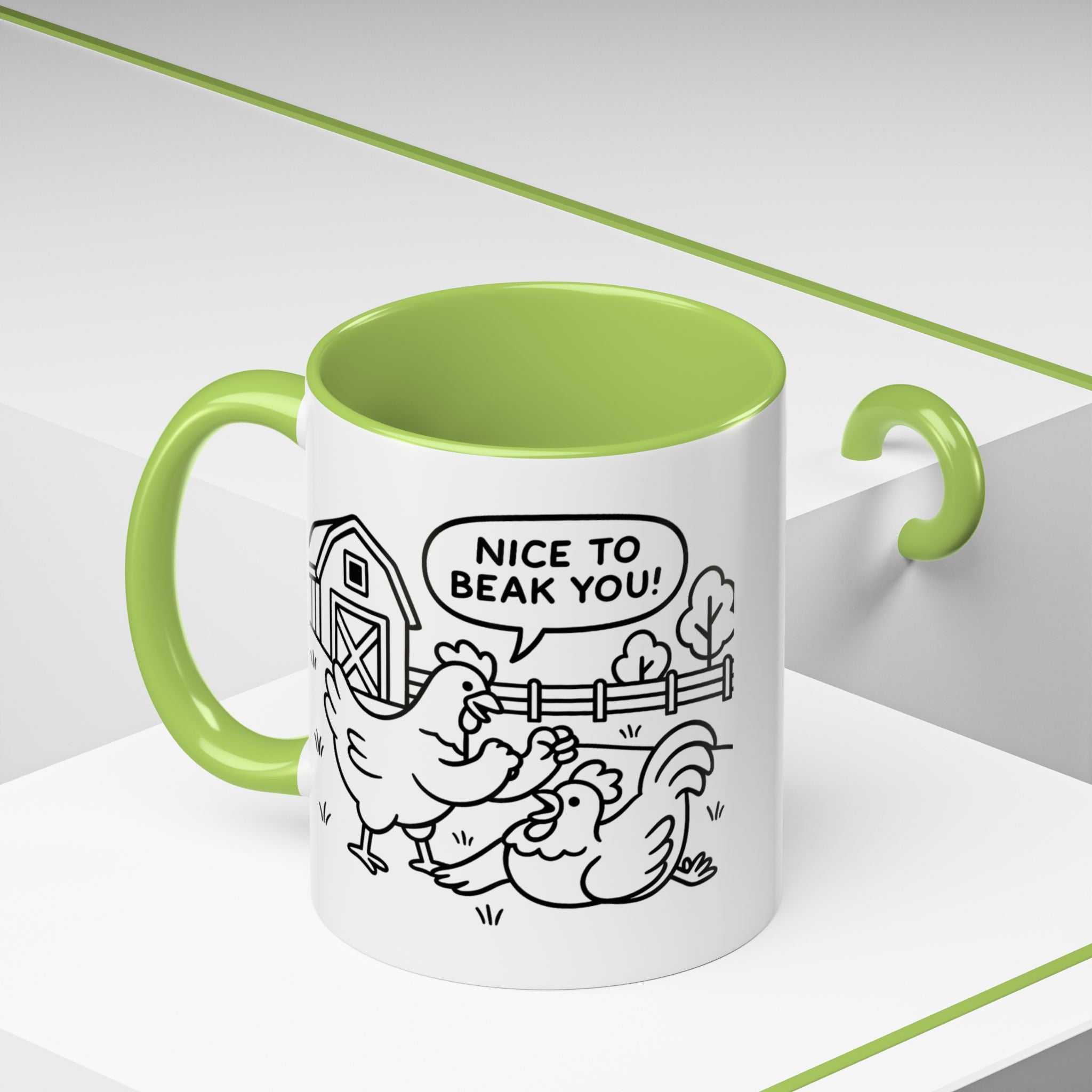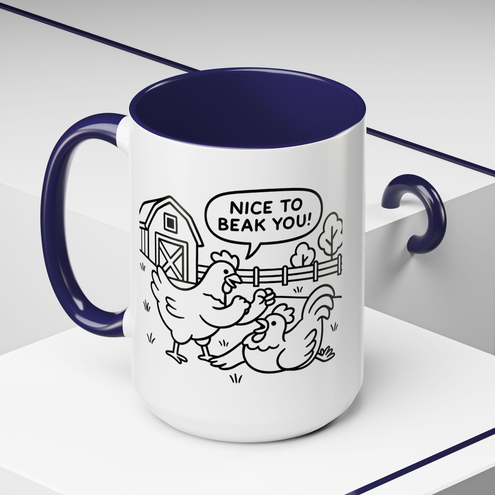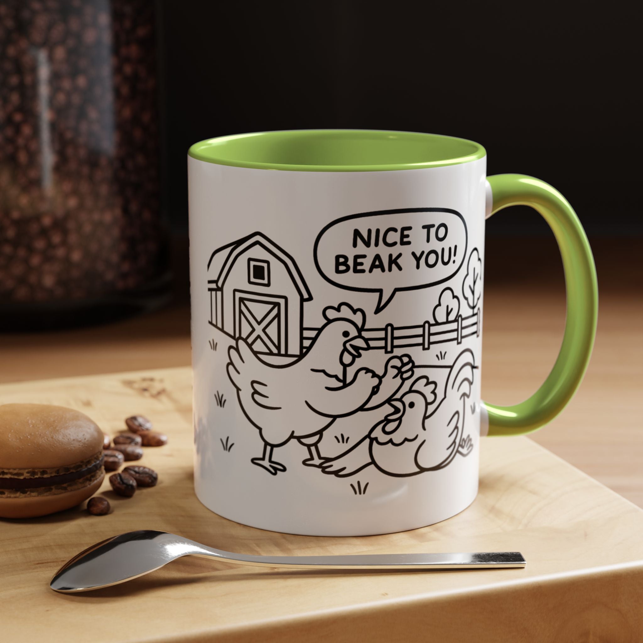 Introducing the perfect morning companion: a stylish Accent Coffee Mug that transforms your coffee ritual into a delightful experience. With its vibrant colors and eye-catching designs, this mug radiates joy and creativity, making each sip a cheerful moment. Ideal for coffee lovers, tea enthusiasts, or anyone looking to add a splash of color to their kitchen, this mug is especially relevant for holidays like Easter, celebrations like birthdays, or cozy gatherings with friends. Its whimsical chicken art is sure to spark conversations and bring a smile to everyone’s face! Product features - Microwave-safe for convenient heating - Dishwasher-safe for easy cleanup - Features vibrant colors using advanced printing techniques - Made from durable, lead and BPA-free white ceramic - Available in two sizes: 11oz and 15oz Care instructions - Clean in dishwasher or wash by hand with warm water and dish soap